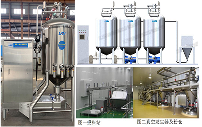 優(yōu)康恩自動化料系統(tǒng)用于對粉料和其它配料進行乳化和水化的混料系統(tǒng)設備。其中真空混料機可在密閉真空容器下進行高速剪切乳化混合綜合產品、各種粉末和液體等,每小時化粉量可達到3T-5T。優(yōu)康恩自動化料系統(tǒng)可利用真空作用將配料輸送到化料設備中,省去了操作工承擔這項繁重工作的需要。